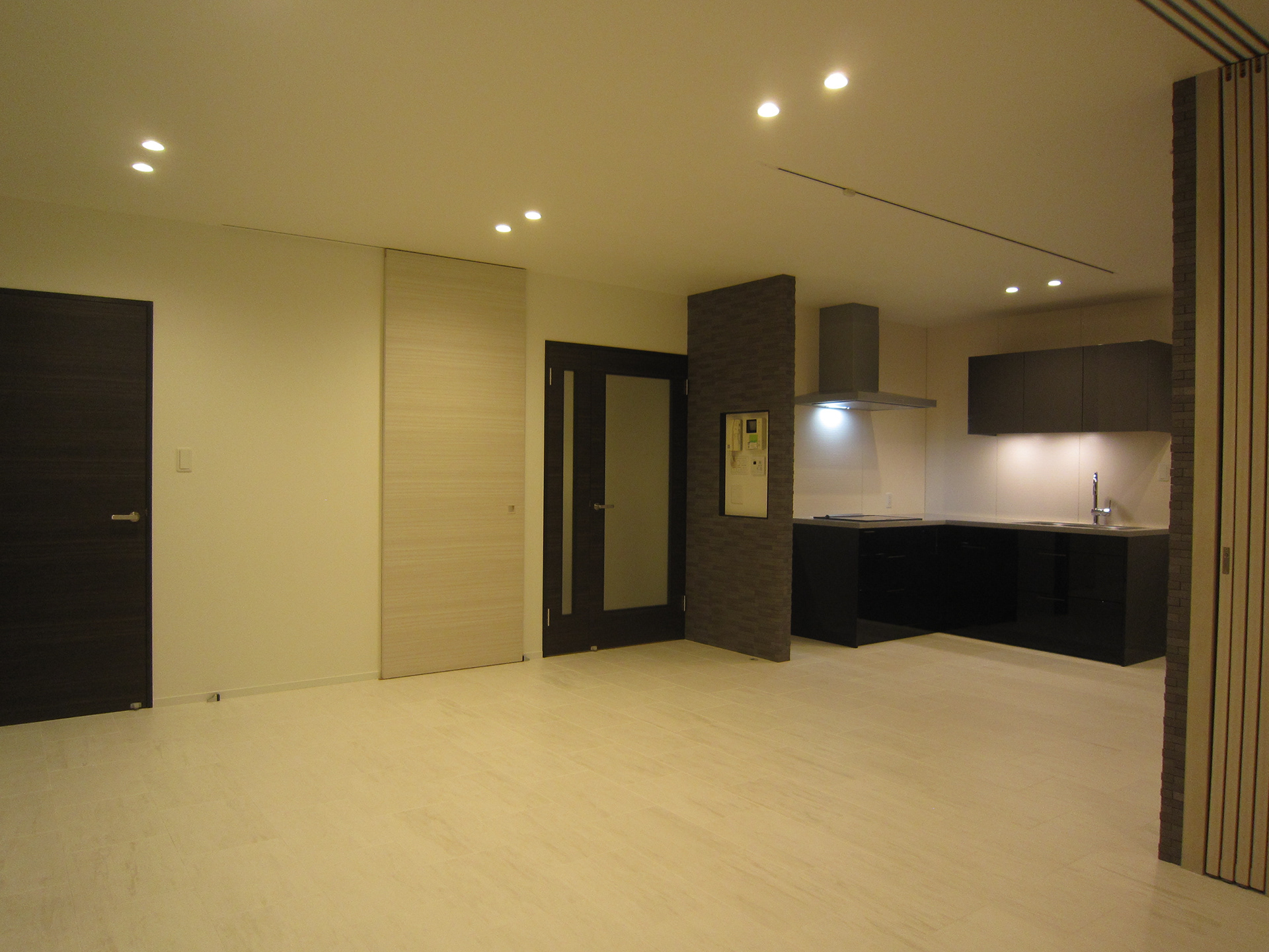 マンション住戸リノベーション、スケルトン後再構築。セカンドハウス、シンプルでモダンな空間に。